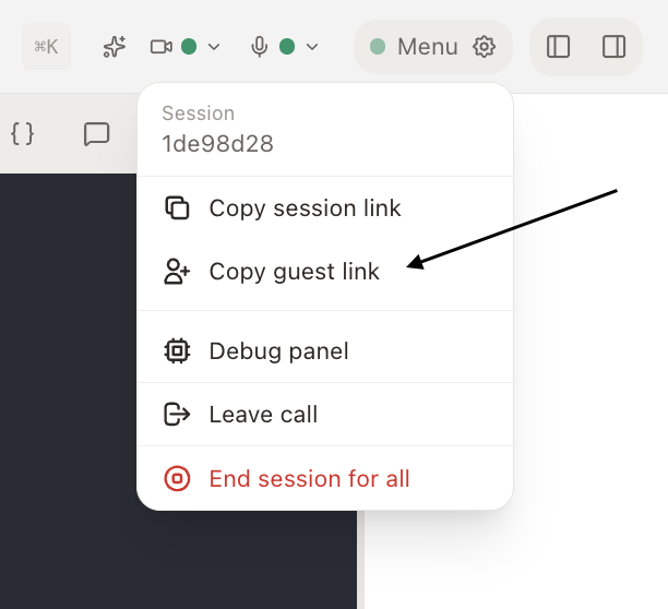 - Share sessions with guests. Create session-scoped invite links so collaborators can join without full team access.